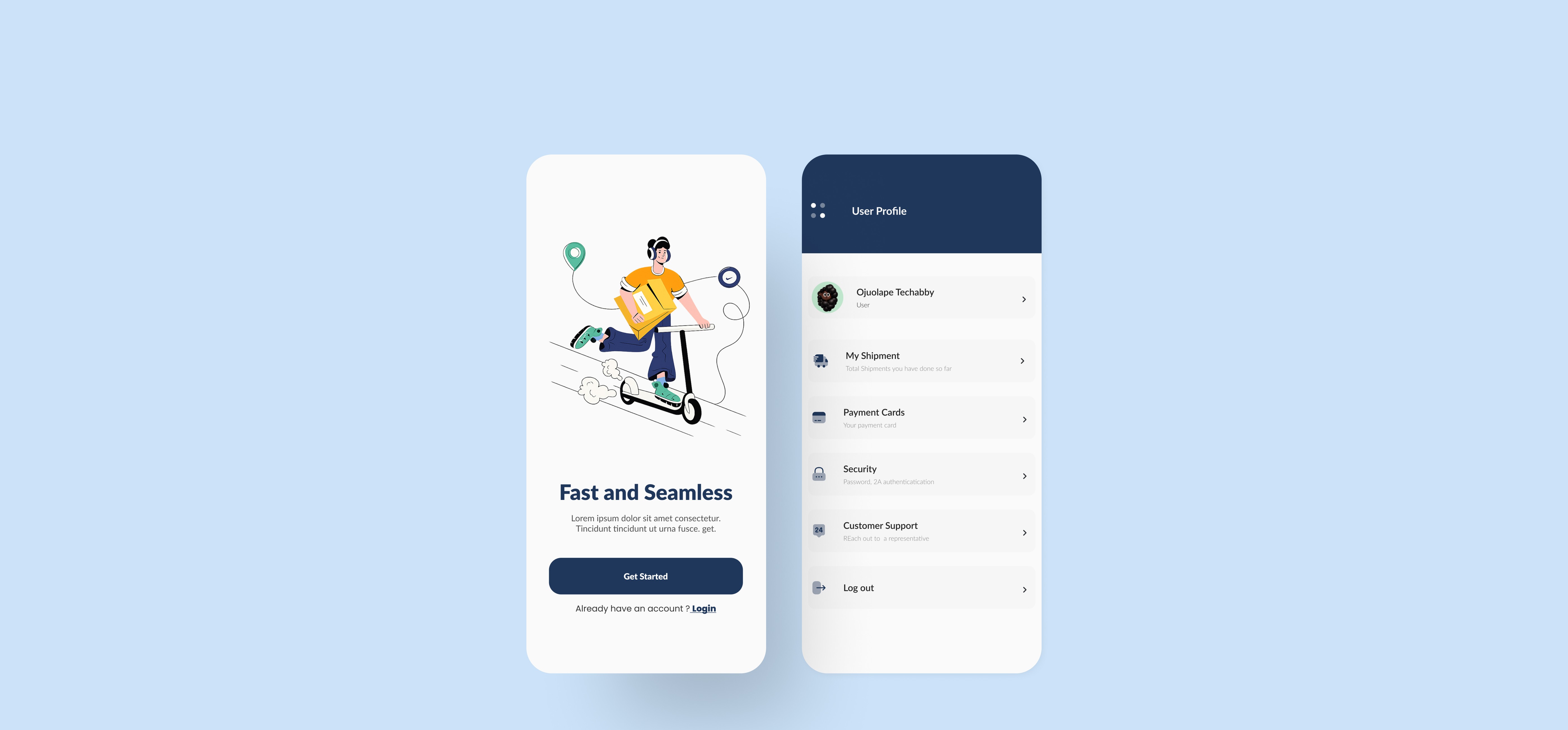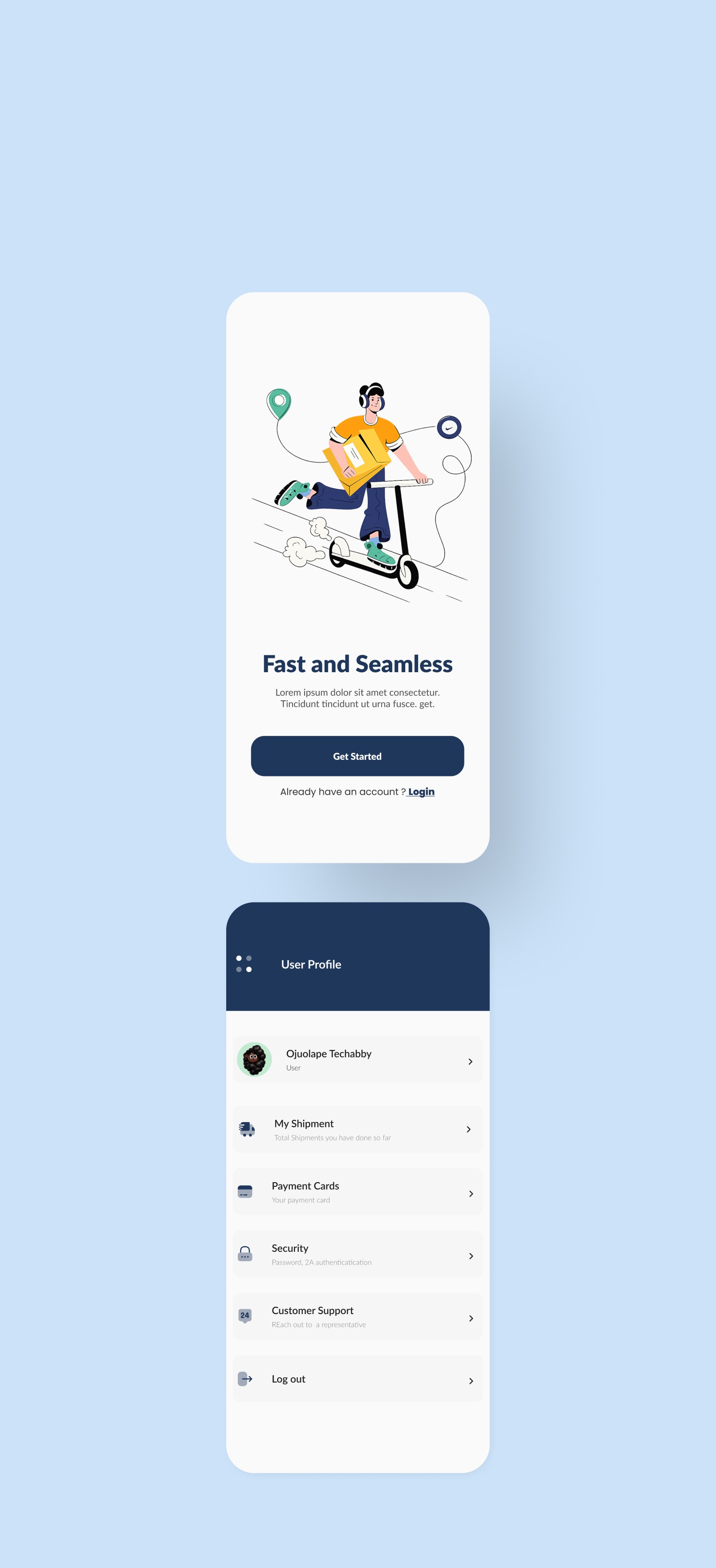 Easily create smooth booking flows for placing pickups, scheduling deliveries, and tracking shipments in real time. The kit also includes clean shipment history screens, order details, and status updates everything you need for a seamless mobile logistics experience.